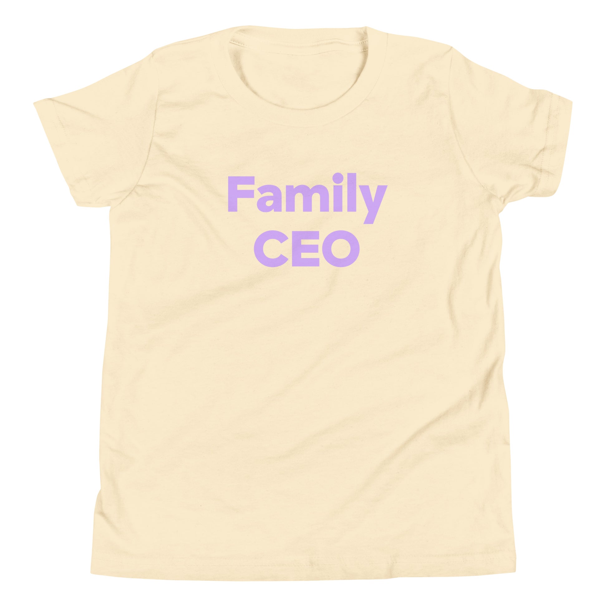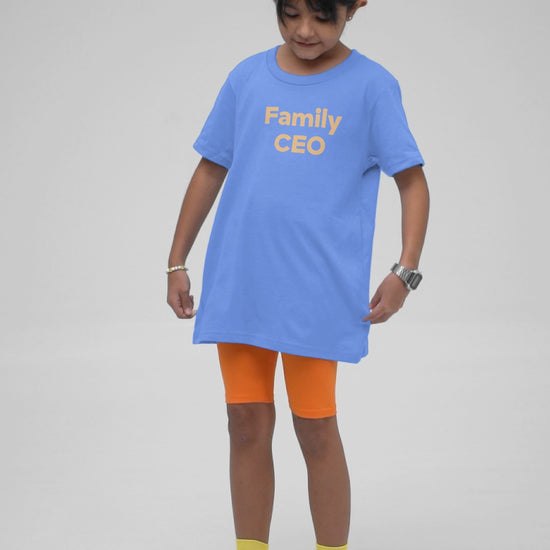 This Family CEO tee delivers big boss energy with a wink. Luxe, soft cotton comfort for the mini exec who calls the shots at playdates and power lunches.